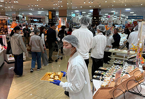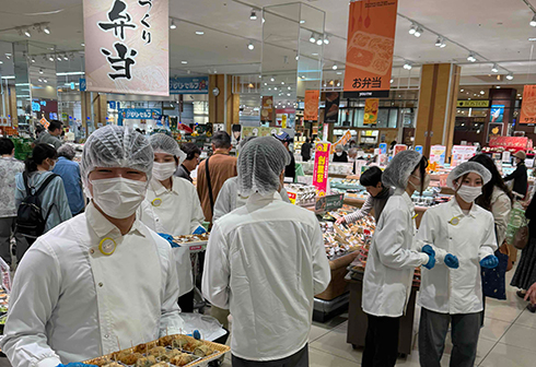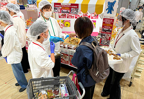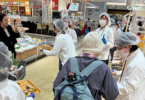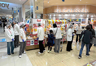 11月1日には「LECT」および「ゆめタウン廿日市」において、学生28名が試食販売を行いました。学生たちは、自らのアイデアから誕生した商品を笑顔でお客様に紹介し、販売を盛り上げました。