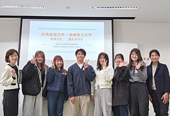 長崎と広島という県を超えた交流を通じて、卒業論文を新たな視点で捉え直す機会となりました。交流会では、浮かんだ疑問をその場で質問できる雰囲気があり、活発な意見交換をすることができたのも印象的でした。この経験で得た学びを社会人になっても生かしていきたいです。貴重な機会をいただきありがとうございました。(4年 潮田 愛佳)