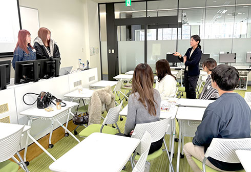 開会宣言の後、長崎県立大学 津久井ゼミの皆さんによるゼミ紹介から研究交流会がスタート。キャンパスの紹介やゼミの理念、ゼミ運営の仕組みなどをご紹介いただきました。中でも、2~4年生が合同で4つのテーマに分かれて活動する津久井ゼミの形式は、学年を超えた学びや成長を促し、多彩な学外活動が展開されるなど、とても興味深い取り組みでした。