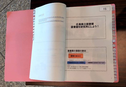 38名の受講学生一人一人が図書館のみなさんにプレゼンした提案を、広島県立図書館のご厚意で1か月間程展示していただいています。お近くにお越しの際はご一覧いただけると幸いです。