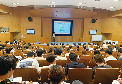 法学部法律学科では、7月5日2限目に1年次生全員が受講する「修大基礎講座」の連続講演会企画 第1回「法律と仕事(1)・弁護士の仕事」を実施しました。