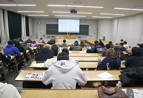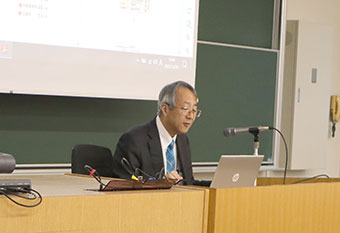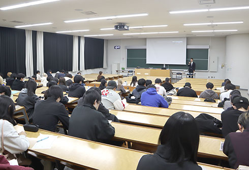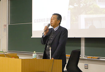 12月16日は広島国税局課税第一部次長 梶原 正則氏をお迎えして「税の役割と税務署の仕事-これからの社会に向かって—」について講演いただきました。梶原氏は、「税の役割」や「財政の現状と課題」といった税に関する基本的な内容について、また「適正・公平な税務行政の推進」では、公平な課税・徴収という観点での税務調査の実態について、「税金クイズ」を用いてわかりやすく説明いただきました。参加受講生からは、税の重要性、税務行政の職務内容についてよくわかったなどの感想が寄せられています。