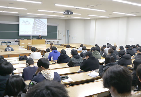 法学部では「法律基礎B(現代社会と税)」(中国税理士会寄附講座)の授業で、広島国税局及び中国財務局のご協力により3つの講演会を行いました。