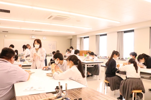 2022.06.20 学修 担当:万徳 ブタの眼・心臓・脳の解剖と観察 本日は、高校2年生の特進コースの生物の授業でブタの眼の解剖を行いました。 ブタの眼は、大きさや構造がヒトの眼とほぼ同じです。 そのため、ブタの眼の仕入れ先では、眼科医の研修用にも出荷したということも聞きました。 授業では、眼を輪切りにして、水晶体を取り出す作業をしました。 水晶体の感触を確かめて、その後、凸レンズと同じなので、新聞の小さい字の上において、字が大きくなるのを確かめました。 また、心臓と脳も仕入れたので、それも観察してもらいました。 生徒の多くは、楽しんで実験・観察をしていました。