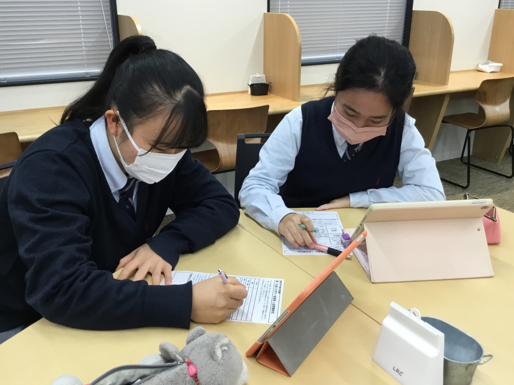 2022.12.14 学修 担当:福田 入試問題研究 高校2年生がLRCで真剣に取り組んでいました・・・のぞいてみるとそれぞれの希望大学について調べていました。 まず希望大学の受験科目を確認し、LRCにずらりと並ぶ〈赤本〉から希望大学を探し出します。 過去の受験問題をコピーし、じっくり眺めています。 冬休みを利用し過去2年分の問題を解き、問題分析し、自分の課題点を明確にし、今後の学習に役立てていくそうです。 高校2年生、もうすっかり受験生ですね!頑張ってください!!