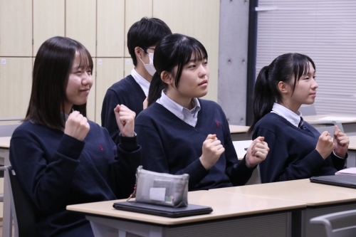 本日の授業では、K-POPやドラマから韓国の文化について学びました。授業のはじめに、韓国で流行している「ミーム(meme)」を真似て動画の撮影に挑戦しました。その後、韓国で人気の歌手のミュージックビデオを見ながら「君」という歌詞が何回出てきたかなどのクイズに答えたり、韓国で流行したドラマの中に登場する有名なセリフを発音してみるという活動に取り組みました。ドラマのワンシーンを視聴する中で、日本と韓国では車の運転席の位置が左右反対であることや、日本語で「マンション」といえば高い建物を、「ア パート」といえば低い建物を想像しますが、韓国ではそれが逆であること、韓国では友達、家族、恋人に対して気軽に「愛してる」と伝えることなど、スウォンさんから韓国と日本の文化の違いについて教えて頂き、生徒たちはその文化の違いに驚いていました。また、韓国と日本の違いだけでなく、韓国の中でも、地域によって言葉のイントネーションが変わるということも学びました。あるドラマのセリフを、俳優が話すイントネーションと比較して、ソウル以外の地域ではどう言うのかを先生が実演してくれました。次回のテーマは「韓国の学校」で す。生徒たちにとって身近な学校が、日本と韓国でどのように違うのか、とても興味深いテーマですね!