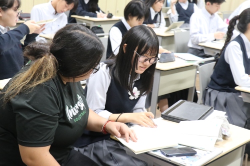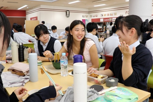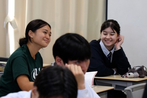 6日(月)はULSの高校生たちが本校の高校一日体験をしました。 今回はULSの生徒と本校の生徒がバディとなり、朝のSHRから終礼までをそれぞれのクラスで過ごすプログラムを実施しました。 バディとなった生徒たちはもちろん、そのほかの生徒たちもゲストスチューデントたちとすぐに打ち解け、授業だけでなく、休み時間や昼休憩時間もたくさんの場所で笑顔と一緒に英語で頑張ってコミュニケーションをとっている姿を見ることができました。