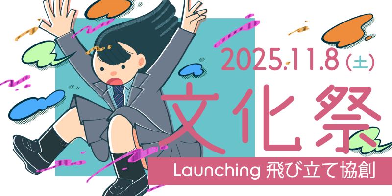 2025文化祭を11月8日(土)に開催します。一般公開は10:00~14:45までとなります。文化祭は全て生徒が協力して創り上げたイベントです。 老若男女誰もが楽しめる企画となっております。 輝き青春する生徒の様子を是非ご覧ください。