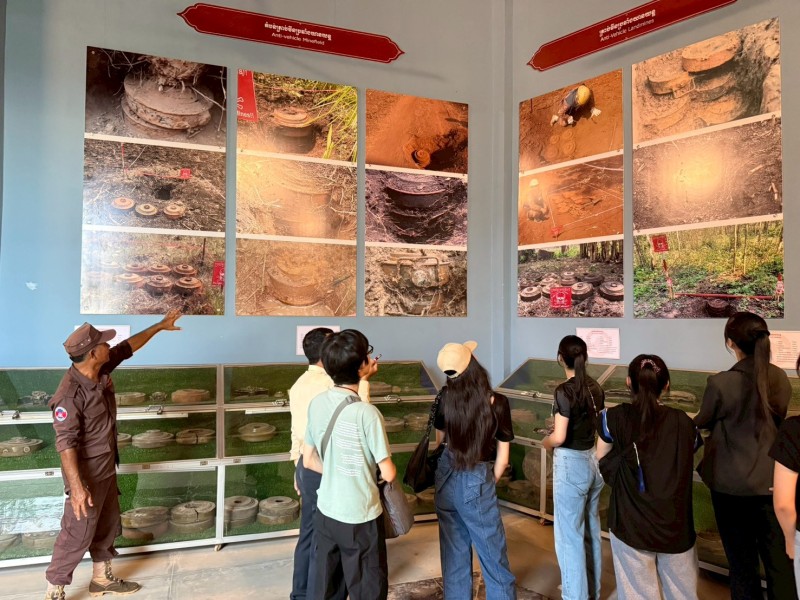 その後は地雷博物館を訪れ、館内を案内していただきながら、内戦の恐ろしさや悲惨さの象徴の一つである地雷について、その被害や撤去の難しさ、そして内線終了後からの復興についての話を聞き、平和とは何かということについて改めて考えることができたように思います。