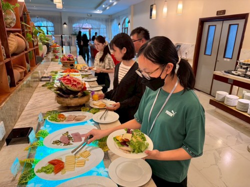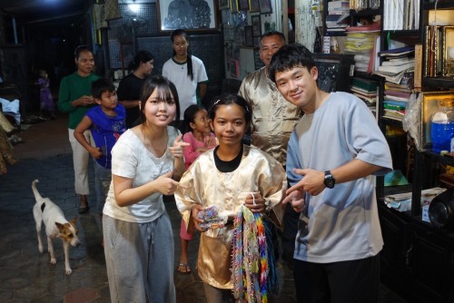 リトルエンジェル孤児院とは、子どもたちが一部共同生活を送っている施設です。この施設の建設には日本も深く関わりがあり、子どもたちはスバエク(革製品)を加工・販売することで生計に役立てているようです。また、「ハピニングプログラム」とは、昨年訪問した現3年生が昨年度の研修後に立ち上げた活動です。幼い子どもたちが十分な学習環境でないにも関わらず、一生懸命にスバエク制作を行ったり、孤児院で授業を受けている様子に感銘を受け、文房具を回収して届けるものです。現高校2年生が先輩の思いを受け継ぎ、「子どもたちの学びを支えるために、自分たちができることを”カタチ”にする」という思いのもと、回収した1000点を超える文房具を心を込めてパッキングし、子どもたち一人ひとりに手渡しました。