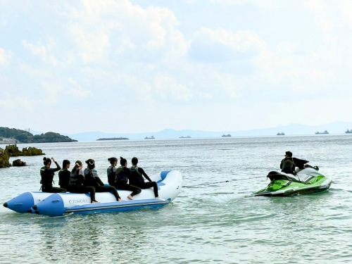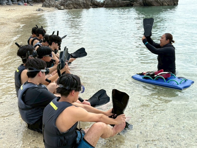 シュノーケリングでは、沖縄の綺麗な海に入り、サンゴ礁やそこに生息する魚達を直接目で見て大自然の美しさを感じることができました。またバナナボードにも乗り、存分に沖縄の海を楽しみました。