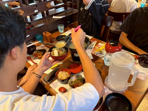 美ら海水族館から、帰ったあとは、御菓子御殿へ移動し、昼食を食べました。昼食は沖縄の伝統料理でもあるソーキソバでした。初めて食べる生徒も多く、沖縄の文化に触れる事ができました。