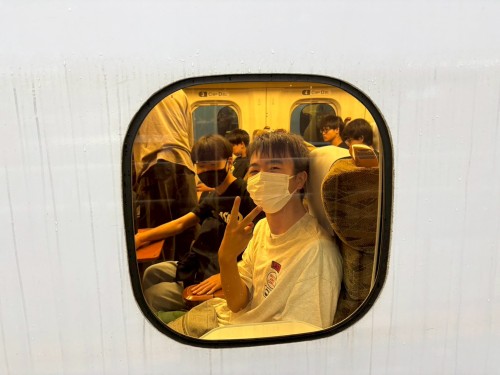 誰一人体調を崩す生徒もおらず、とりあえずはひと安心です。先生方から話があり、いよいよホームに移動し、新幹線に乗り込みます。