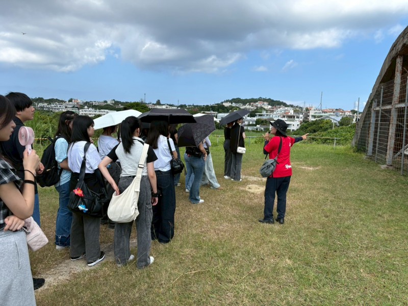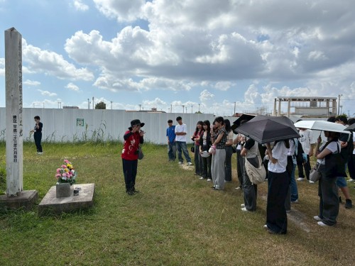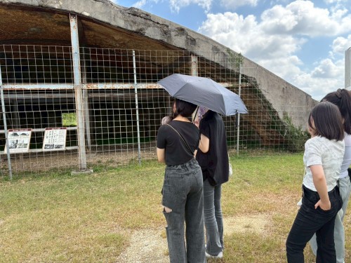 掩体壕(当時、小型戦闘機を収めていた場所)の見学ではかつての戦争の跡地を見ながら、当時の沖縄地上戦の細かな様子まで、ガイドの人に教えて頂きました。改めて戦争の怖さを実感することができたと思います。
