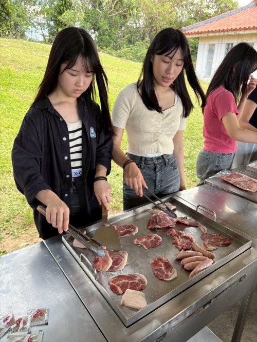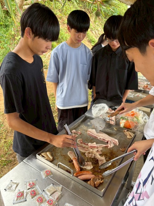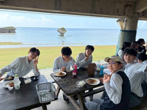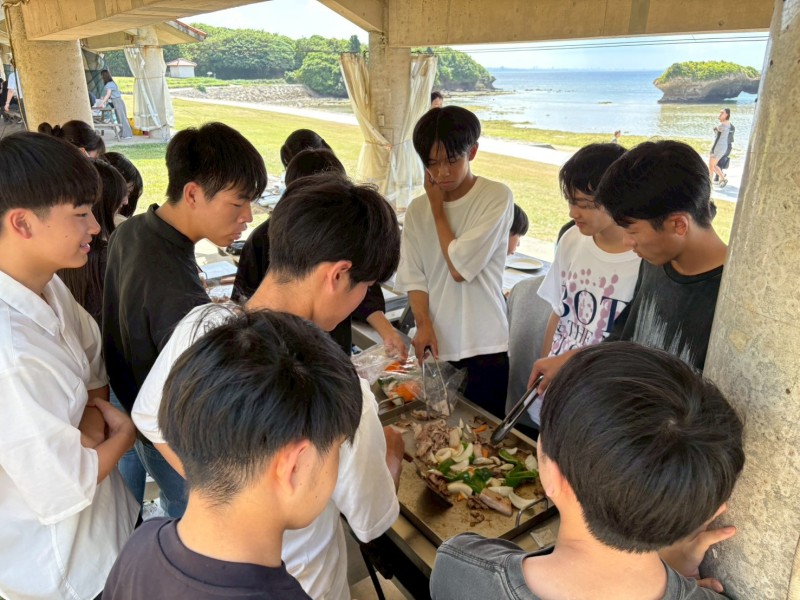 綺麗な海岸を背にしながら、美味しいお肉をいただきました。お肉もたくさん用意して頂き、生徒達はみんな満腹で大満足の様子でした。