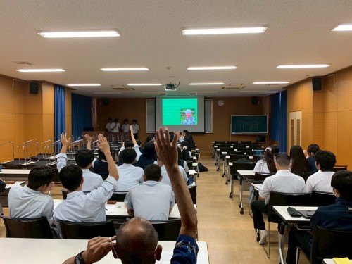 プレゼン終了後には、お土産を交換し合い、本校生徒の竹野くんが閉会の挨拶を行いました。挨拶の最後には、竹野くんの唱和でお互いに拍手を送り合い、交流会は無事に終了しました。