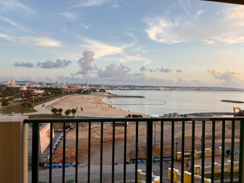 今日から泊まるホテルはアメリカンビレッジのすぐ隣で、日本とは違う建物や景観に生徒は興味津々でした。