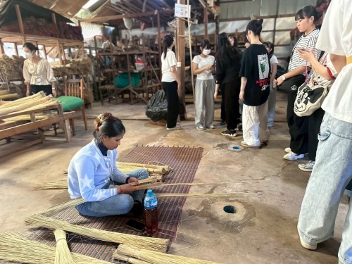 今回は2グループに分かれ、SARA SUSUやその工房で作られているい草を使った工芸品の制作工程の説明などを聞くレクチャーと実際に体験するお守り(チャーム)作り体験に参加しました。