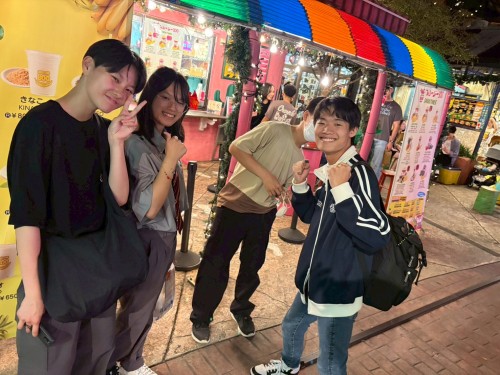観光クエストが終わった後はホテルに戻って、待ちに待った、アメリカンビレッジの散策を行いました。煌びやかな街並みに生徒達は少し興奮気味で出発して行きました。