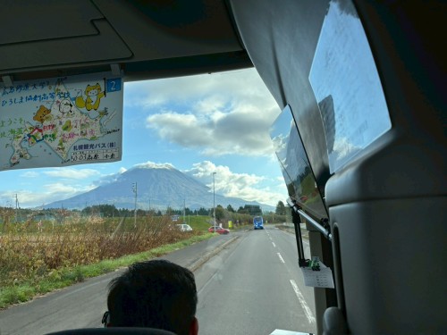 宿泊地のニセコから、1898mの高さを誇る羊蹄山を横目にバスに揺られながら、4つのコースに分かれての観光人クエストです。