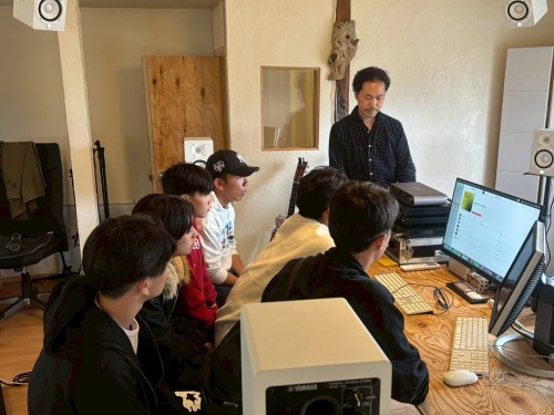 最初に自分で洞爺湖での音を選び、録音する活動から始まりました。生徒は自分なりに面白い音を選び、そのデータを持って音楽施設に向かいました。