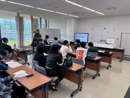 洞爺湖温泉街の地域で「めぐりや」というカフェを経営されている、秋葉晃佑さんのお話を伺い、「洞爺湖をもっと好きな場所にする」というテーマのもと様々なワークを実施しました。