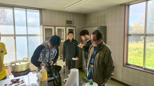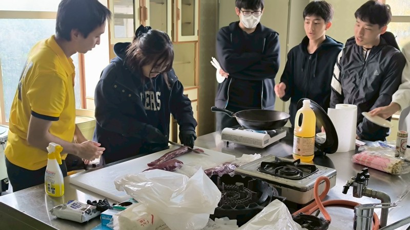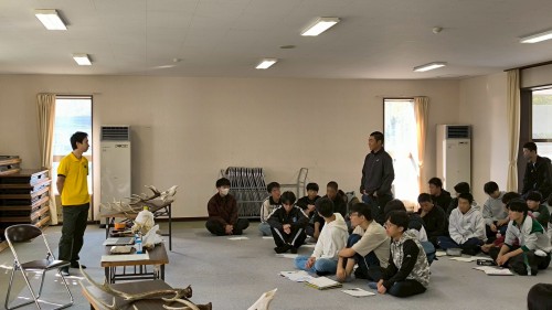 上記の問いが与えられた後、庄野さんが実際に行っている活動であるエゾシカ肉の食用利用について紹介や試食を行いました。生徒は実際に狩猟されたエゾシカに触れ、エゾシカの大きさや体温を実感していました。また、初めて食べるエゾシカ肉はとても美味しいと生徒たちから大変好評でした。最後に問いに対する振り返りが行われ、生徒からは「思い切りが大切 」や「正しいものを信じて選択したいけと、正しいものは人によって違うことも理解する必要がある」などと意見が交わされて観光人クエストを終えました。