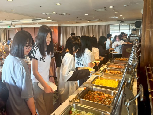 今日の朝、生徒たちは元気に朝食会場に姿を見せました。しっかりと休んで疲れも十分に取れたのでしょう。朝食もいっぱい食べていました。