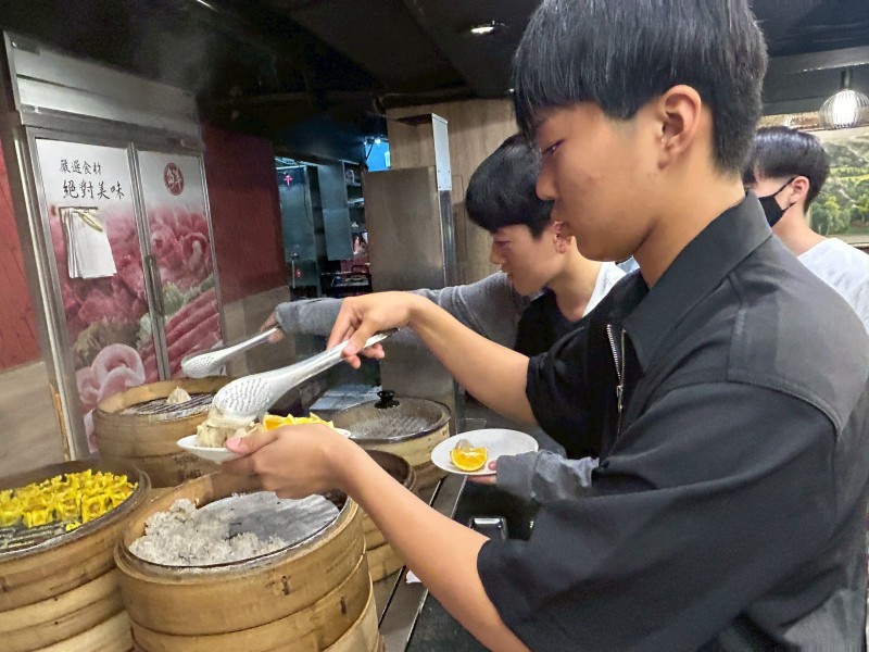 夕食はモンゴリアンBBQです。最近台湾で話題になっているということで、生徒たちも興味津々でした。