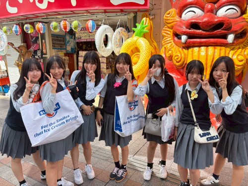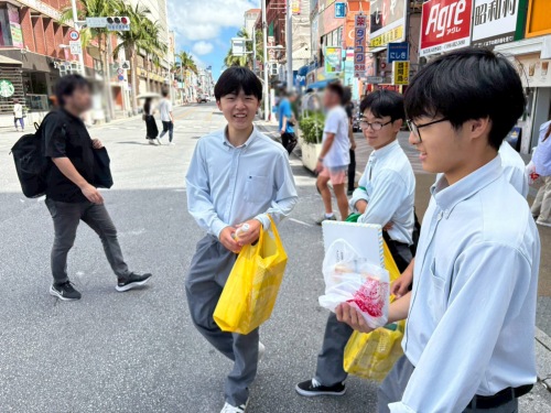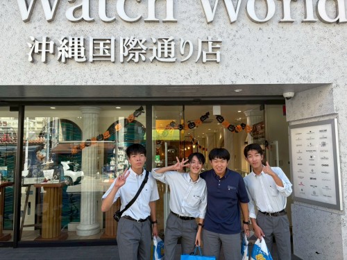 各自で昼食をとった後は、お土産を買ったり、服を見たり、食べ歩きをしたりと最後の沖縄を満喫しました。バスの出発にも全員が間に合い、無事国際通りを出発することができました。研修旅行を通して時間を意識して行動する習慣が身に付いたように感じます。