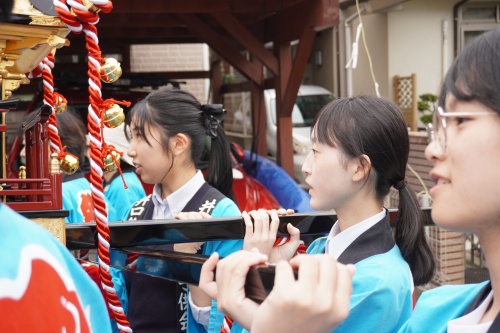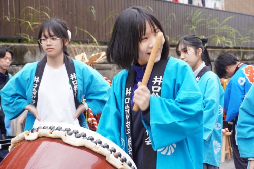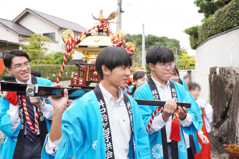 地域連携事業の一環として、10月19日(日)に行われた井口鈴が台一丁目町内会主催「子どもみこし行列」に、本校の生徒が参加しました。