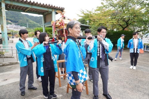 町内会長からは、「去年も参加してくれた現生徒会長から次期生徒会長へ、みこしの“担ぎ手のバトン”が確かに引き継がれた。来年以降もこのバトンをつないでいってほしい」との言葉をいただきました。