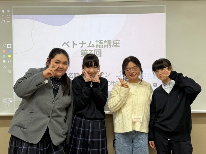 本校は広島修道大学附属校として、大学とのつながりを活かした多彩な国際理解プログラムを展開しています。その一つが、広島修道大学で学ぶ留学生が講師を務める外国語講座です。