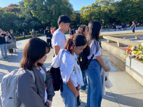昼食の後は平和記念公園に移動し、原爆ドームや原爆資料館を見学しました。来日前から日本のこと、そして広島のことについてたくさん事前学習に取り組まれていたそうで、それぞれの施設を訪れるたびに、心を震わせ、想いがあふれそうになる場面もありました。