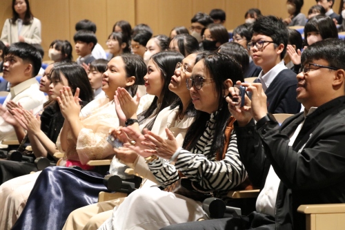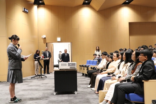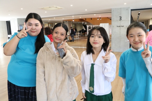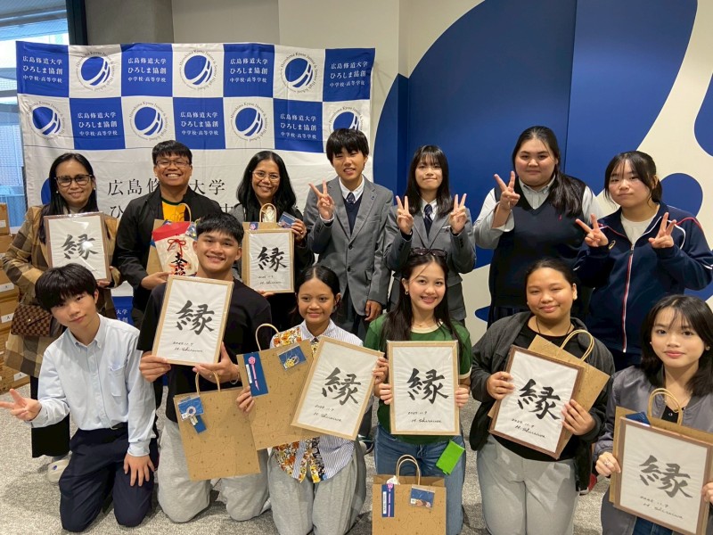 学校に戻ってからは、本校校長より「縁」という漢字をしたためた色紙と協創水引を贈呈し、その意味に込められた想いを伝えました。さらに、宮島名物のしゃもじも記念品としてお渡ししました。ホストスチューデントの生徒たちとも1日の出来事を互いに話し合ったり、笑顔で冗談を言い合ったりと、和やかな時間を過ごすことができました。短い時間ではありましたが、互いにとって思い出深い、あたたかな交流のひとときとなりました。