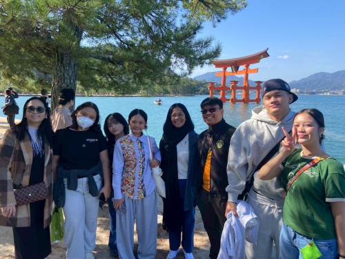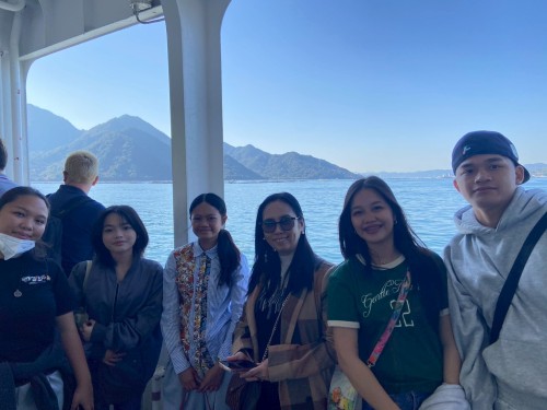 7日(金)は広島の人気観光地である宮島を訪れました。道中では、周囲の景色に興味津々で写真を撮りながら、「この建物は何ですか?」「“shrine gate”は日本語で何と言いますか?」と積極的に質問し、会話を楽しむ姿が見られました。フェリー乗り場は、修学旅行生や外国人旅行者で賑わっていましたが、天候にも恵まれ、絶好の旅行日和となりました。