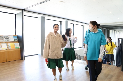 8日(土)は本校の文化祭に参加しました。朝の時間に協創ホールで歓迎行事を行い、本校からはウェルカムメッセージや学校紹介を、そしてサンホセのみなさんからは温かな言葉や伝統舞踊の披露といった、普段、私たちが見ることのできない、フィリピン・セブ島の文化に触れることができました。その後は午前中、文化祭をバディの生徒たちやそのクラスの仲間たちとともに過ごし、正午ごろ、次のプログラムに向けて、本校を出発されました。