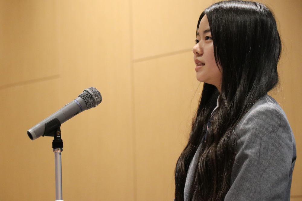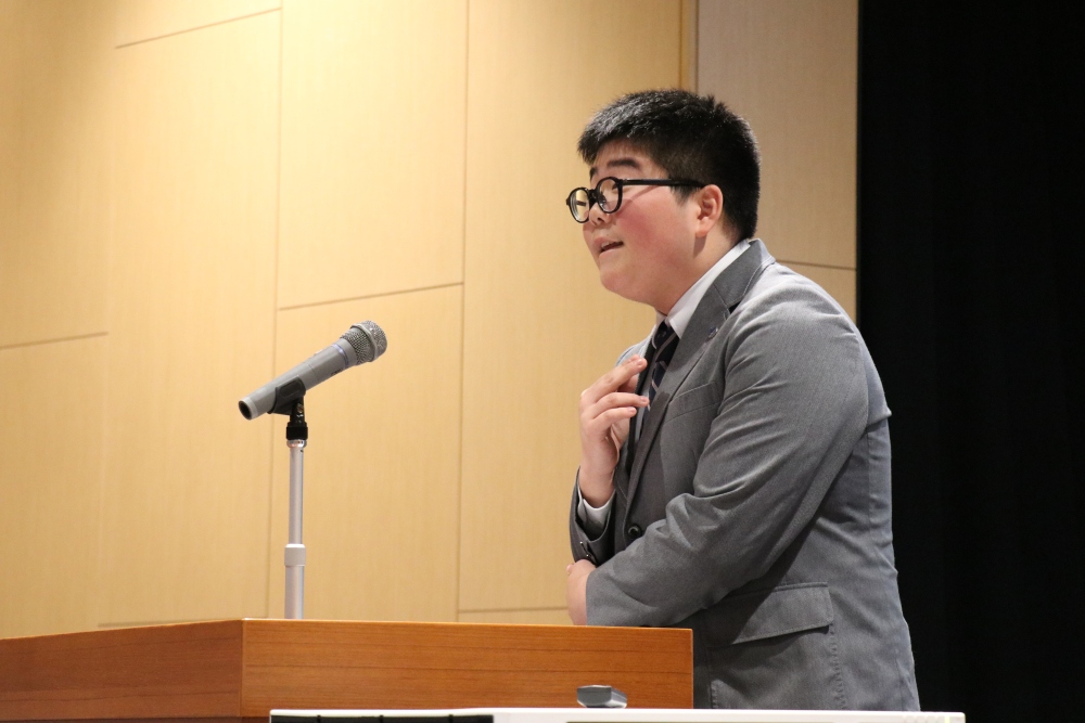 日本語部門の審査をしていただいた難波先生から、「とても良かった。英語と違って日本語は母語なので、普通に話していると通り抜けてしまうが、発表者のみなさんがそれぞれの口調で語ってくれていました。また、その人にしか話せない内容が多かったのので学びになった。この大会を続けていくと、とてつもなく大きなものになる。」と講評をいただきました。