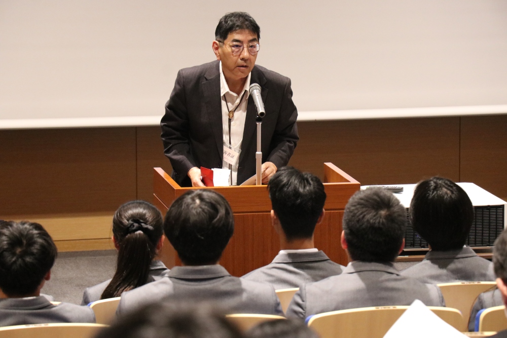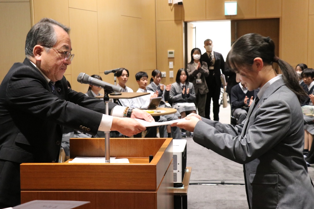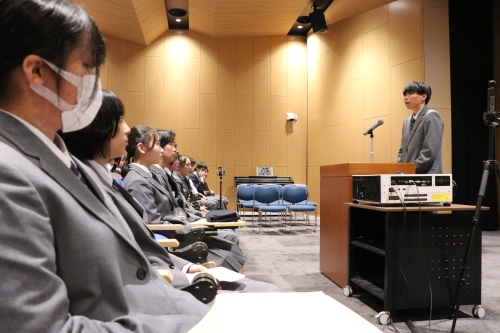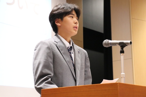 外国語部門の審査をしていただいたHoy先生からは、「みなさん、素敵なプレゼンをありがとうございました。英文を記憶したり英語を話す難しさはよく分かります。そんな中でよく頑張ったと思います。今日のプレゼン自体が一歩踏み出して挑戦することに繋がっていると思います。」と講評をいただきました。