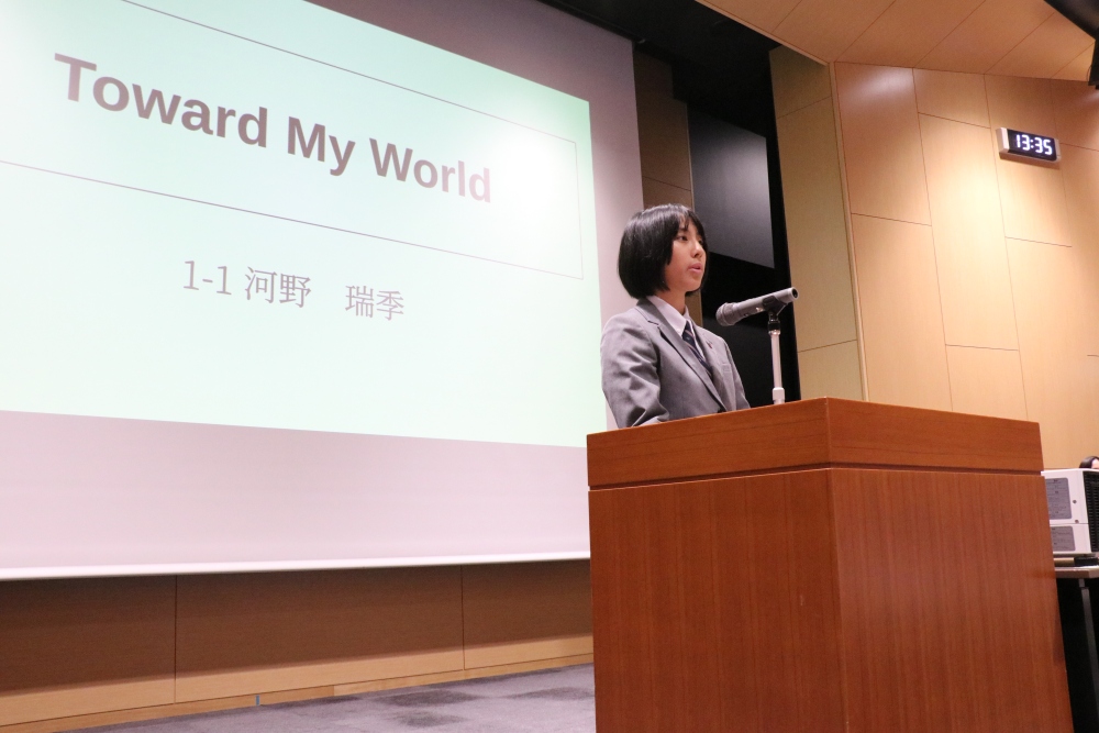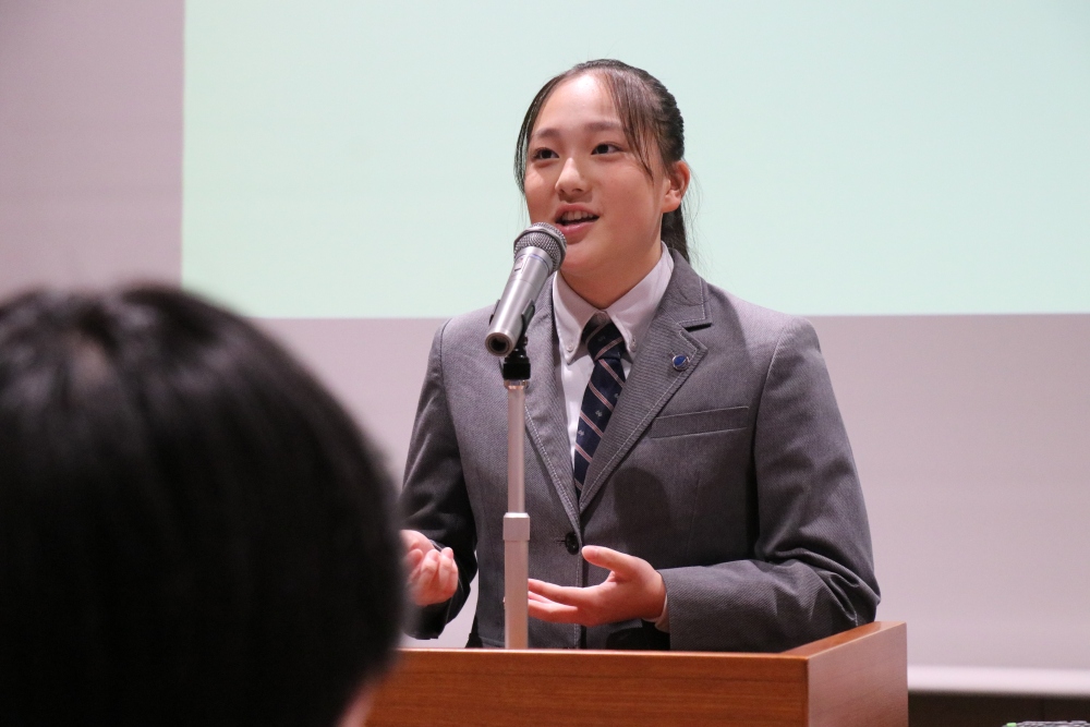 本校の中学生が3年間取り組んできたKyoso Presentation Contest(KPC)をよりレベルの高い行事にしたいという思いと、高校1年生での開催ということで「+」と「Grade1」を付けた名称にしました。