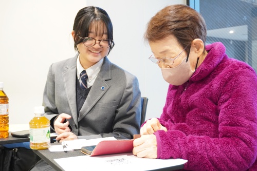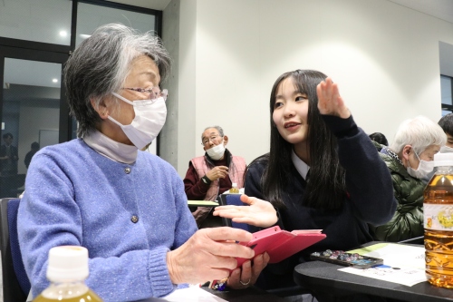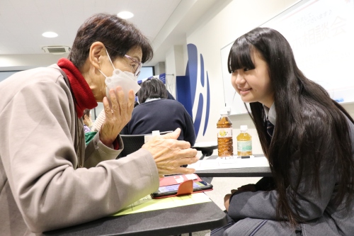 スマホ操作では生徒たちが先生ですが、人生経験においてはシニアの方々こそが大先輩です。生徒たちは時折、学校生活についてシニアの方々に相談し、温かいアドバイスをもらう場面も見られました。