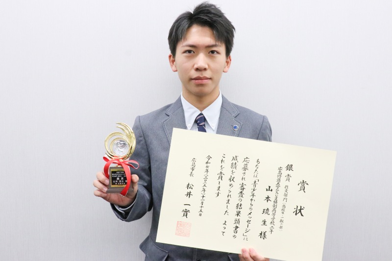 ▲銀賞受賞した山本くん(高校2年生)