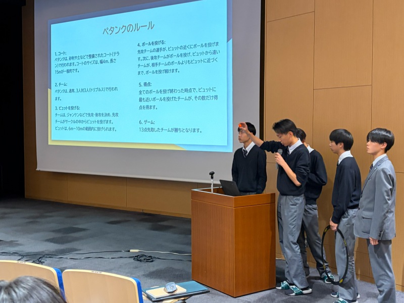 2組の代表1グループ目は「ペタンクを通した交流活動」をテーマに発表しました。