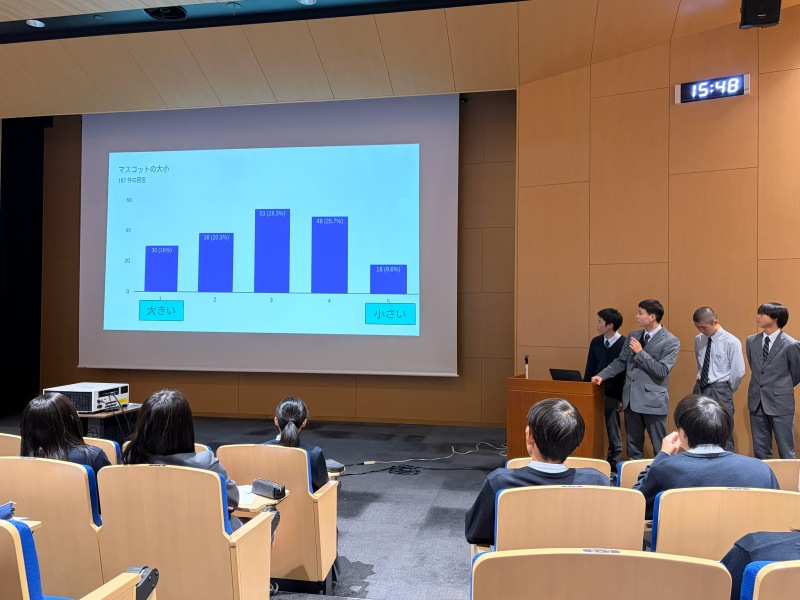 4組の代表は「学校マスコットキャラクターの作成」をテーマに発表しました。