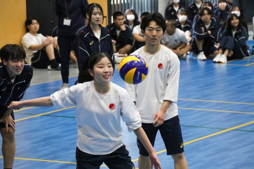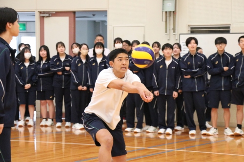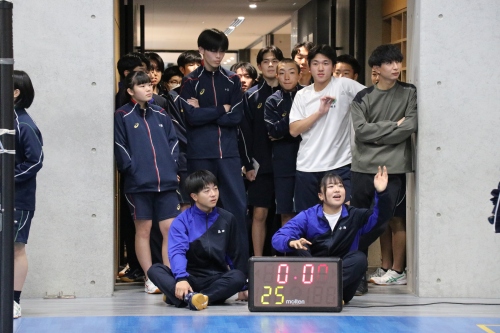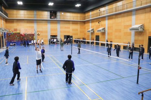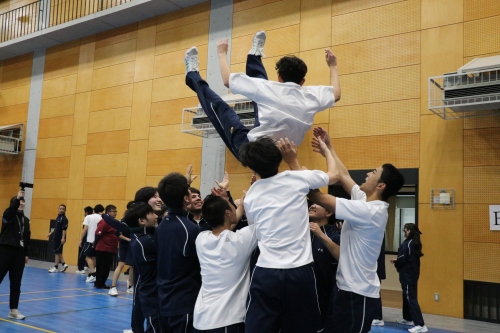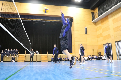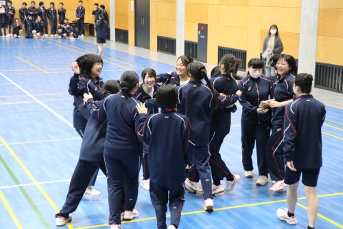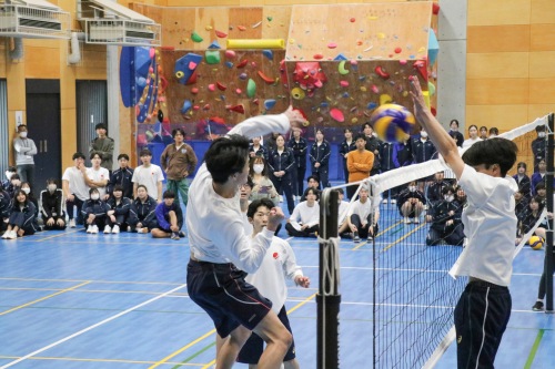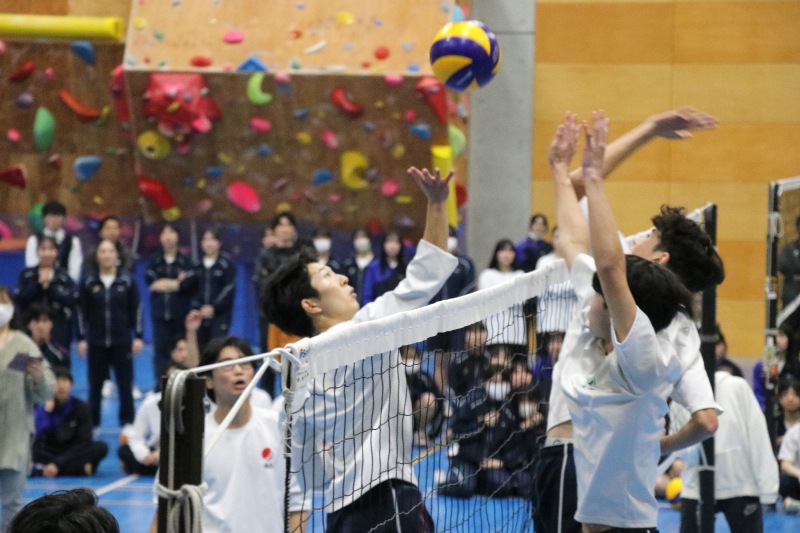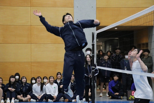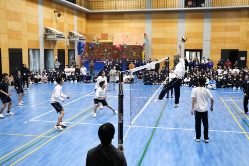 高校クラスマッチは、生徒自治会が中心となって企画・運営を行いました。本年度は、男女混合によるバレーボール対決を実施しました。実際の競技ルールよりも取り組みやすい独自ルールを採用し、楽しく競技に参加できるクラスマッチとなりました。試合はリーグ戦から始まり、各リーグ1位のクラスがトーナメント戦へ進出する形式としたことで、戦略性と一体感のある白熱した試合が展開され、例年以上の盛り上がりを見せました。