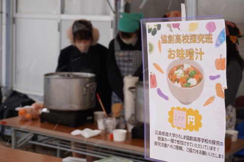 また、今年は新たな試みとして、探究学習に取り組んでいる生徒たちが企画した「特製みそ汁」の販売も行いました。