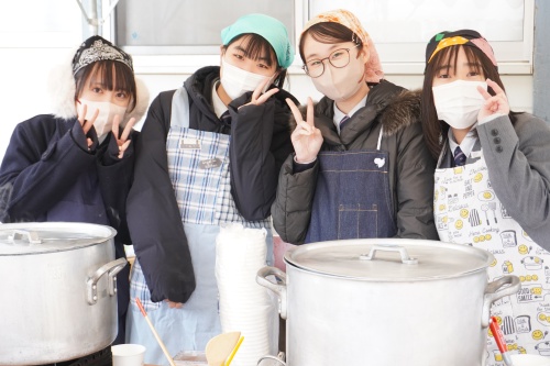 厳しい寒さの中での活動でしたが、自分たちが作った一杯を「おいしいね」と喜んで食べてくださる姿を目の当たりにし、生徒たちは大きな達成感を得たようです。