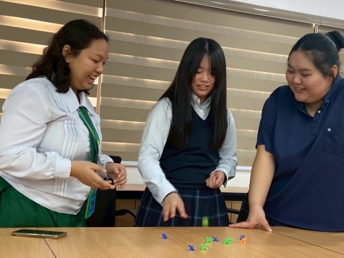 1つ目の「Jack Stone」は、机の上に石を転がし、スーパーボールが落ちる前に石を取るという遊びです。最初は少し難しかったですが、慣れると意外と簡単で、とても面白い遊びでした。