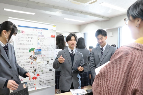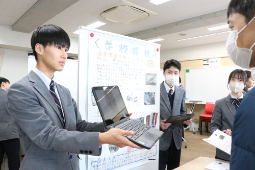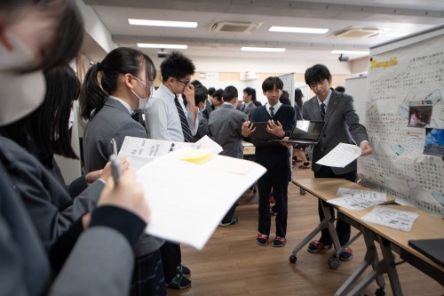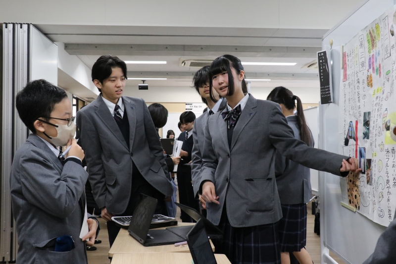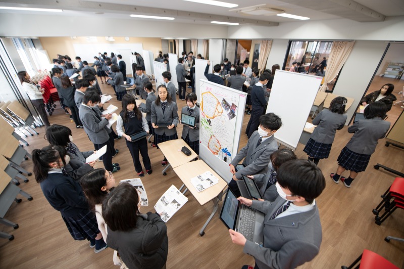 このたびのポスターセッションで、中学3年間での探究学習は一区切りします。来週の授業では、オーディエンスからいただいた意見やアドバイスを基に、自分たちの発表を振り返ります。それは、今日の振り返りと同時に、自分たちの3年間の探究活動のまとめにもなります。 どのような振り返りを行うか、今から楽しみです。