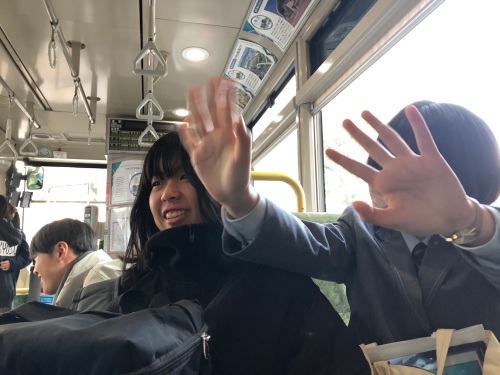 広島駅とカミハチエリアをつなぐ「エキ×デンスクエア」で開会式が行われた後、貸し切りの路面電車に乗って街並みを眺めながら、会場であるおりづるタワーへ移動しました。途中、建設中の「KAMIHACHI X(カミハチクロス)」付近では、建設に関わっている方が手を振ってくださるというサプライズ演出があり、生徒たちは思わず笑顔になって楽しそうに手を振り返していました。人々の関わりによってまちの魅力が生まれていることを体感するとともに、都市を舞台にしたイベントの工夫やアイデアに驚きながら、多くの学びを得ること ができました。
